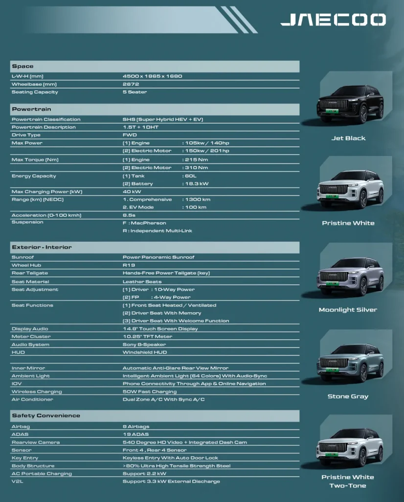 Offering class-leading automotive technology with a design-led, luxury focus, JAECOO combines heritage with technology to embody the ethos of “From Classic, Beyond Classic.”